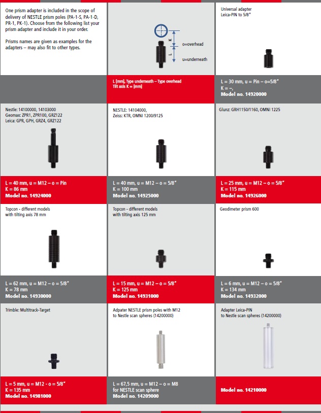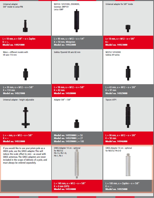 Podaljšek - adapter je vmesni povezovalni element za pritrditev prizme na vašo ali novo obstoječo prizemsko nosilno palico za različne proizvajalce merilne opreme TOPCON / SOKKIA / NIKON ali potisnim sistemom WILD / Leica.